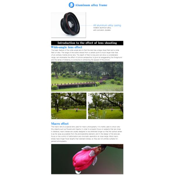 black color 2 in 1 phone lens kit 0.6x wide angle lens + 15x macro lens for mobile phone